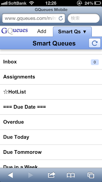 コンテキストやステータス相当のタグごとにSmart Queuesを作らないと、モバイルでは確認出来ないことになります。