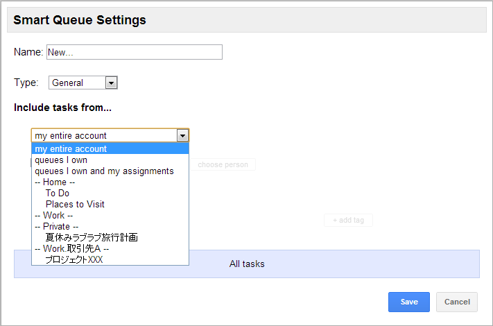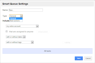 Smart Queuesの種類として、General(一般)かNext actions(次にやること)を選択できます。